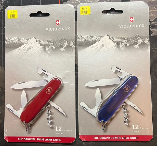 Dettagli del prodottoVendo coppia di coltelli Victorinox Spartan, uno rosso e uno blu. Entrambi sono The Original Swiss Army Knife e presentano 12 funzioni.
