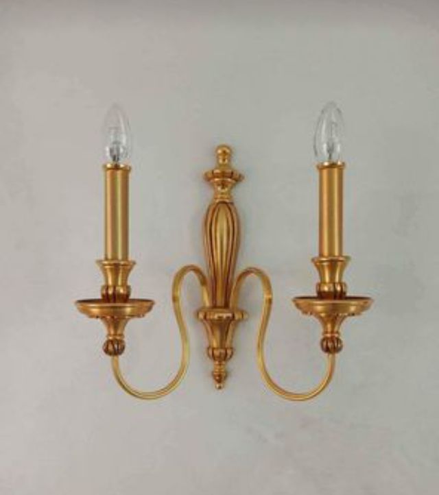 Coppia di applique due luci Ottone placcato in oro 24 carati. Acquistato in gioielleria