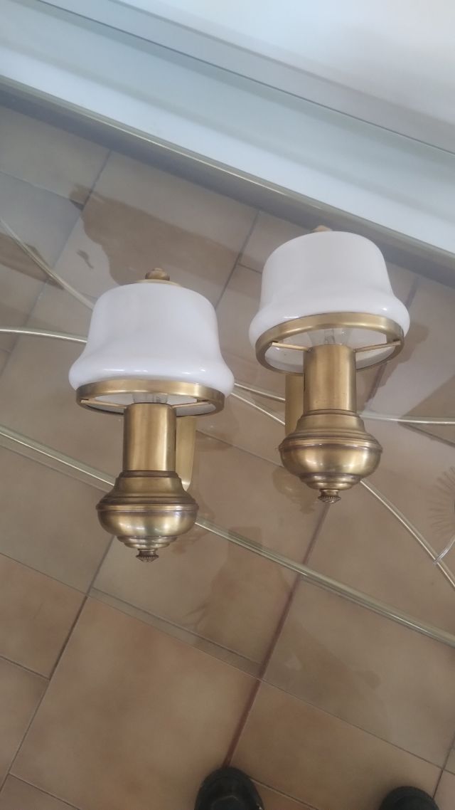 coppia di applique in ottone e vetro