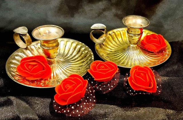Dettagli del prodottoCoppia di bugie portacandele in metallo argentato