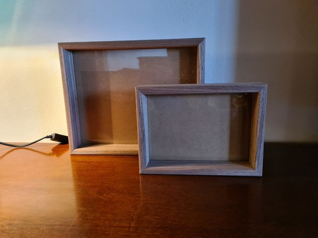 Cornici in legno. Possono essere appese al muro o tenute appoggiate su un ripiano. Misure delle foto 12.6x17.6 e 20.3x25.2 Vendibili anche singolarmente.