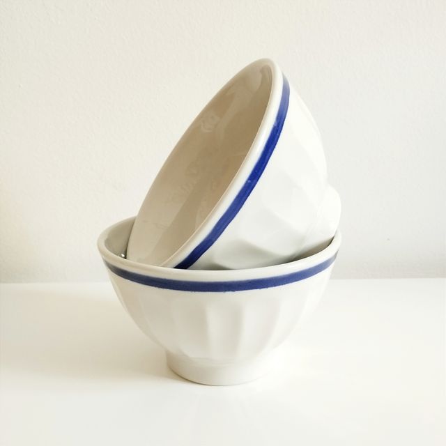 anni 70 le tazzone in ceramica bianca con rigo blu prodotte dalle Ceramiche Saturnia. Diametro cm 14