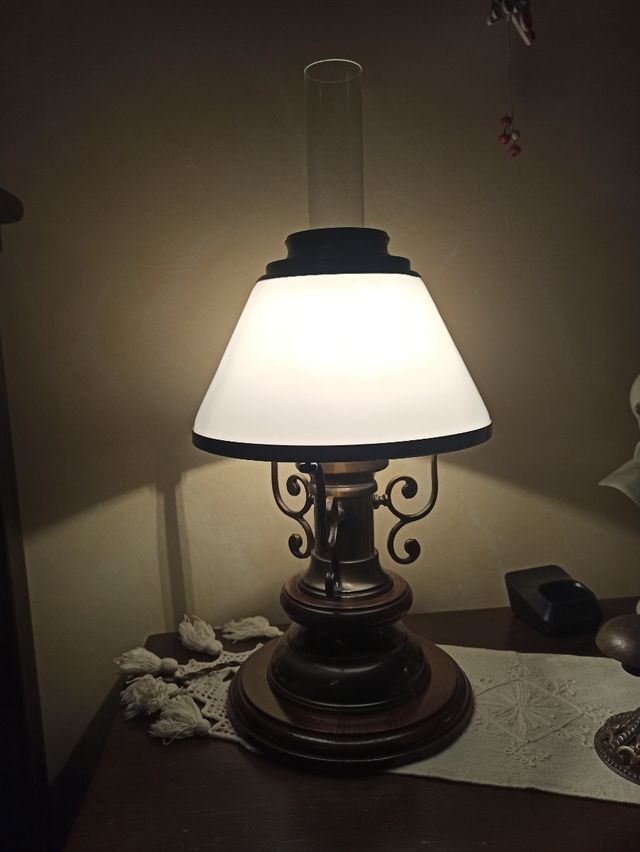 coppia di lampade vetro e legno