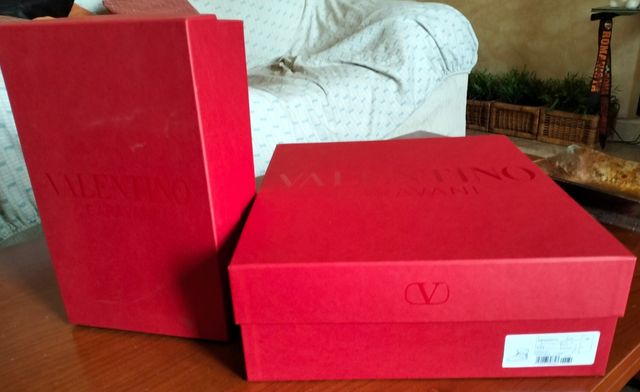 scatole rosse Valentino misura lunghezza 31 cm larghezza 19 cm altezza 11 cm l'altra lunga lunghezza 37 cm larga 33cm alta 12 cm