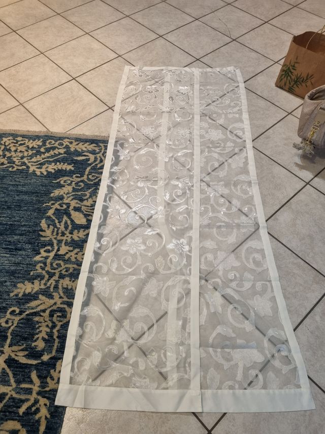Cm 45 x 175 nr.2 pezzi coppia di tende con finiture in raso. Decori tono su tono Il prezzo è per la coppia