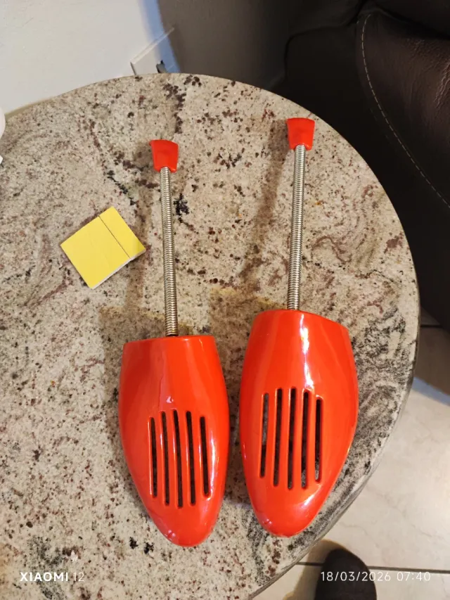 Coppia di forme per scarpe di colore rosso. - Materiale plastico. - Design con fessure per la ventilazione.