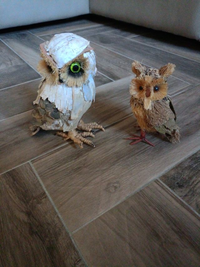 2 Gufi realizzati a mano Molto belli Adatti in qualsiasi ambiente Gufo bianco altezza 20 cm Gufo 🦉 marrone 15 cm