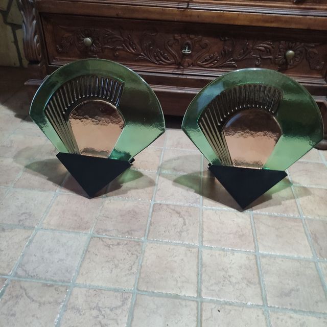 Dettagli del prodottoCoppia applique marca ITRE in metallo di colore nero e vetro di Murano.