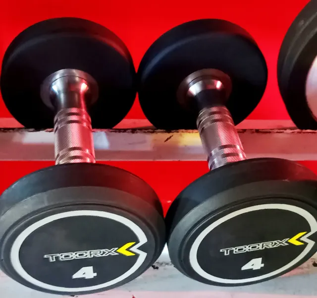 Coppia di manubri da 4kg, ideali per allenamenti. - Rivestimento in poliuretano. - Impugnatura antiscivolo.