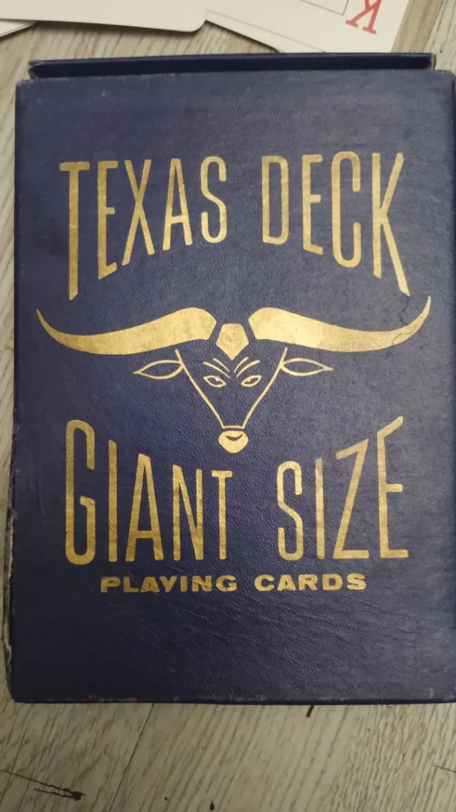 Dettagli del prodottoCoppia di mazzi di carte Texas Deck Giant Size risalenti agli anni '70. Le carte presentano un design a tema con un bufalo.