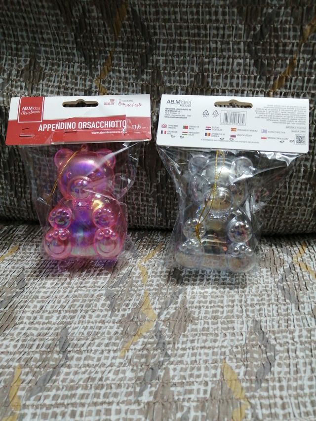 Coppia orsetti in plastica, 1 rosa e 1 trasparente, da appendere e portaregalo