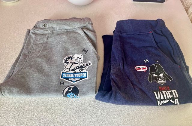 Usati, il grigio è in ottime condizioni, il blu è un po’ più vissuto ma ancora in discrete condizioni. La misura è 12 anni. Materiale felpa leggera