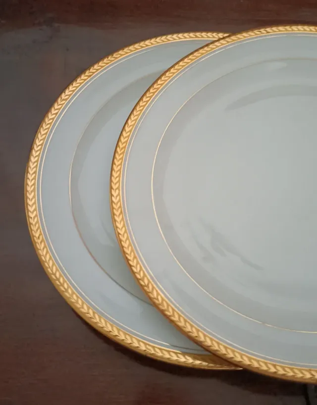 Coppia Piatti Limoges Porcellana smaltata è Oro.