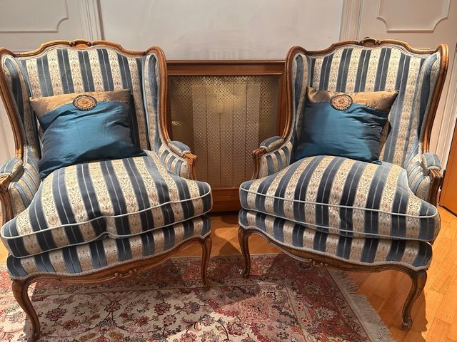 Come nuovo · Blu e Dorato · Tela e Velluto e Legna