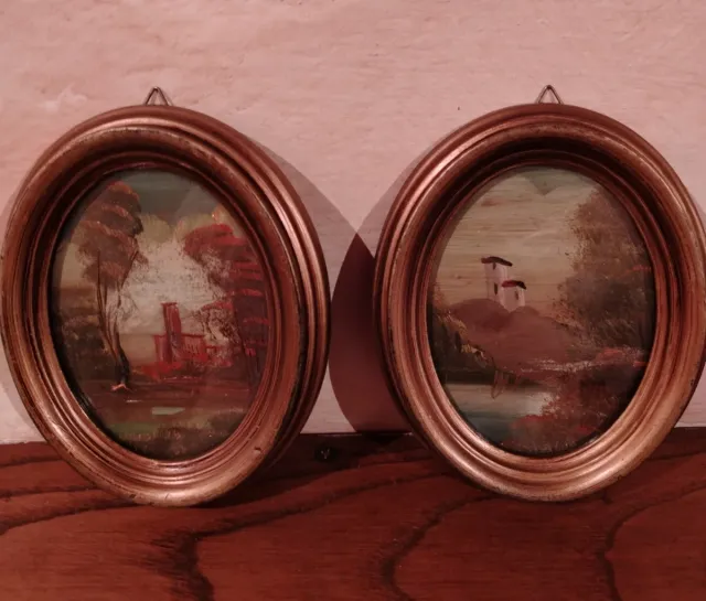 Dettagli del prodottoDue quadretti gemelli, vintage, paesaggi dipinti, cornici ovali, lingnee e dorate, completi di vetro,in ottime condizioni, misure:15x12cm. Molto interessanti. Prezzo fisso.