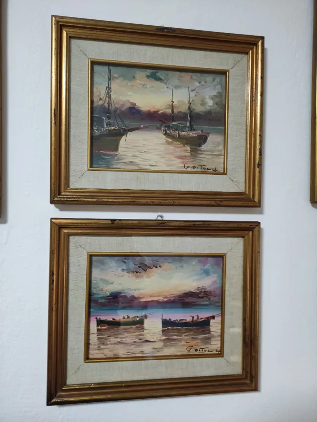 Coppia quadri antichi dipinti tramonti sul mare