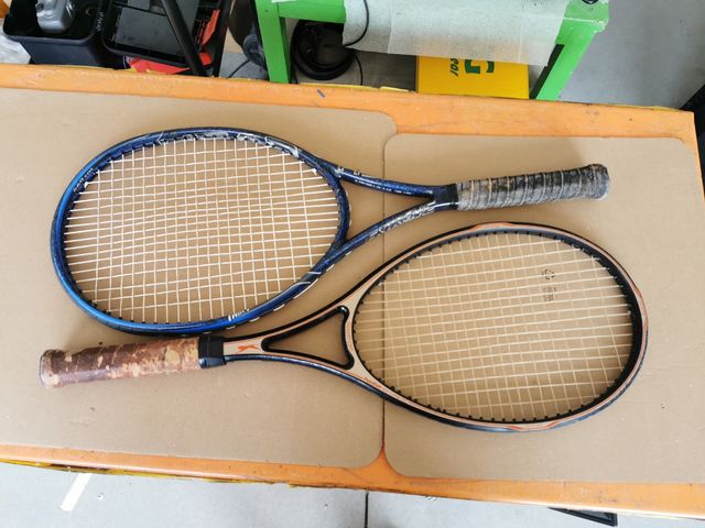N. 2 racchette da tennis dei tempi passati, in buono stato con cordatura a posto