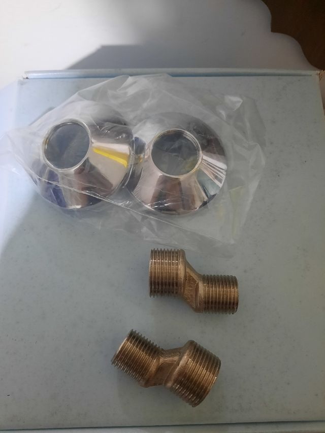 Coppia eccenteici, raccordo a S 1/2 x 3/4 in ottone con Rosetta. nuovi