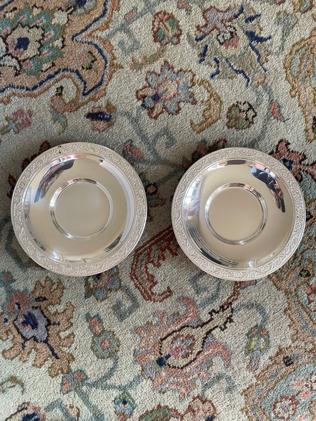 Coppia Sottobottiglia Vintage Metallo Argentato