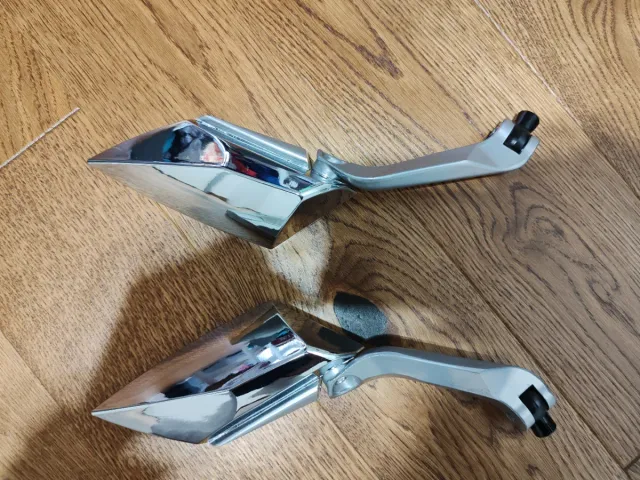 Dettagli del prodottoCoppia di specchietti retrovisori con finitura cromata lucida. Il design è moderno e aggressivo, con una forma affilata che aggiunge un tocco sportivo.