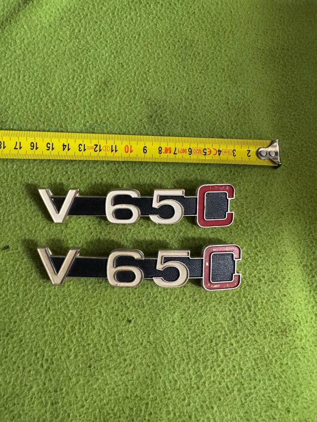 oggetti sono targhette per i fianchetti laterali della motocicletta Moto Guzzi V65 Custom.