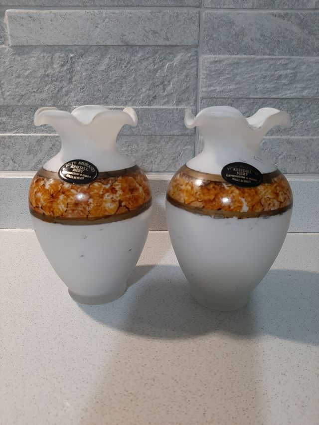 Coppia di vasi antichi, vetro di Murano. Altezza 15 cm.