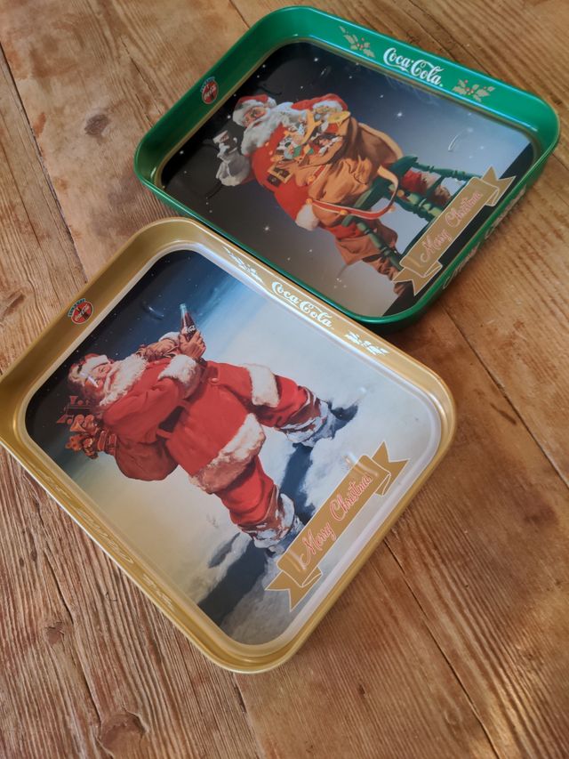 vendo coppia vassoi Coca Cola vintage collezione Natale fine anni '90 in metallo in ottime condizioni con leggeri difetti visibili dalle foto