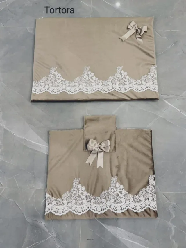 Copri forno Tortora panna o grigio con pizzo e fio
