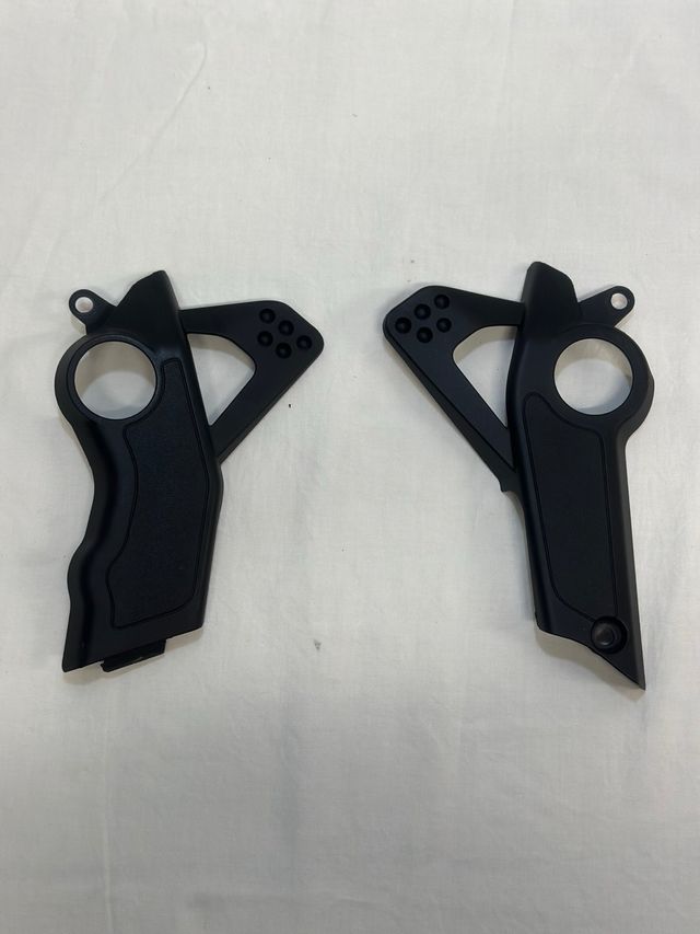 Set di copri telai in plastica nera per Ducati DesertX. - Proteggono il telaio da graffi e urti. - Design specifico per Ducati DesertX. - Facili da installare.