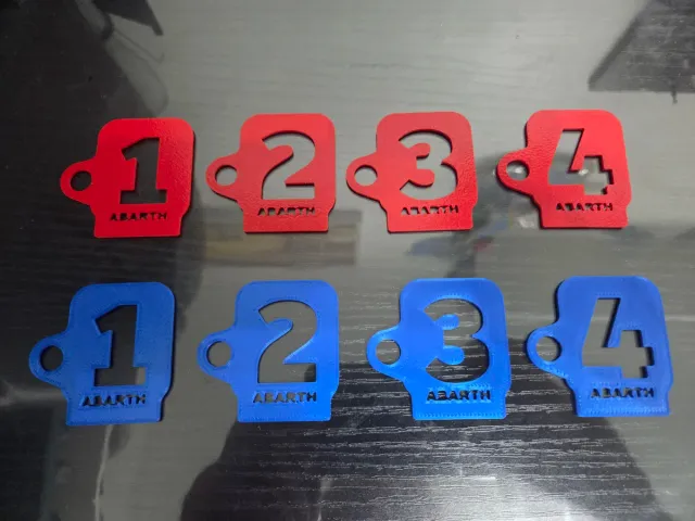 Set di copribobbine Abarth con numeri da 1 a 4. Realizzati in stampa 3D - Disponibili in vari colori - Design con numero inciso e logo Abarth.