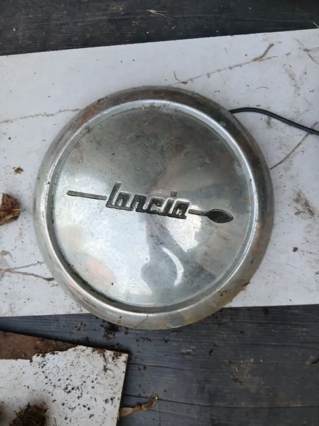 Copricerchio in alluminio con logo Lancia, ideale per auto d'epoca. - Materiale: Alluminio - Marca: Lancia - Stile: Vintage