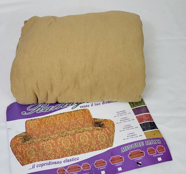 Copridivano 4 posti - Marchio : Orosei - Tessuto elasticizzato millerighe- Colore : Beige- Estensione massima Cm 220