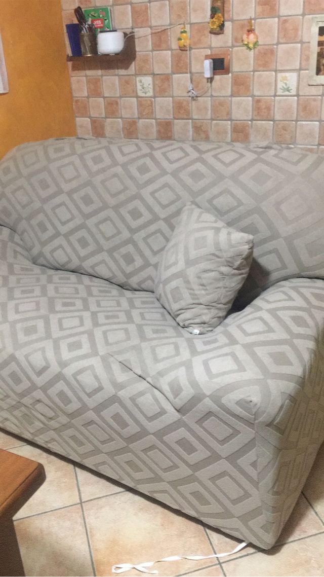 Mai usato perché risultato piccolo!Ideale per un divano fino a m 1,55!Stoffa molto morbida e consistente !Cuscino abbinato!