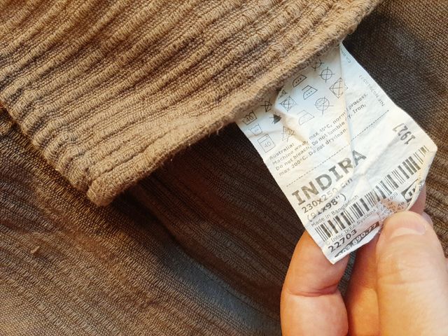 color tortora, 250x230 cm. 100% cotone. alcuni fili tirati giustificano il prezzo. ottimo come copridivano se avete animali
