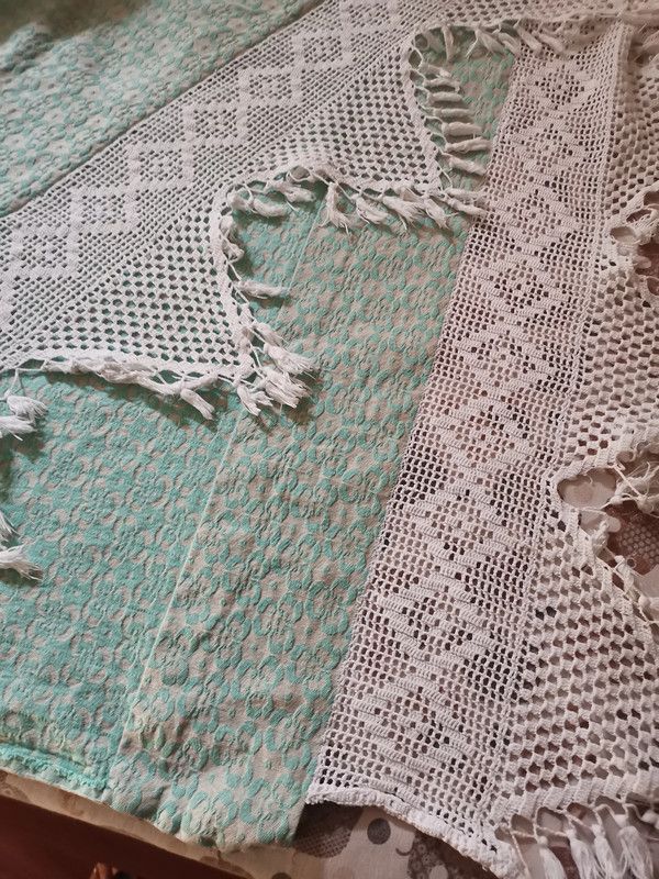 Dettagli del prodottoCopriletto matrimoniale in cotone cm.220x240 con pizzo su 2 lati fatto a mano di cm 24 Misure del prodotto