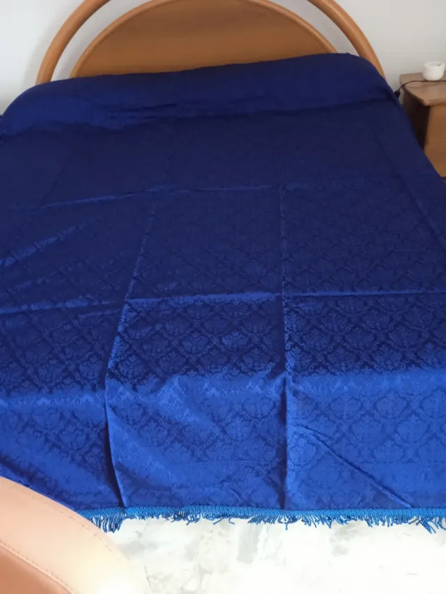 Copriletto blu con fantasia damascata