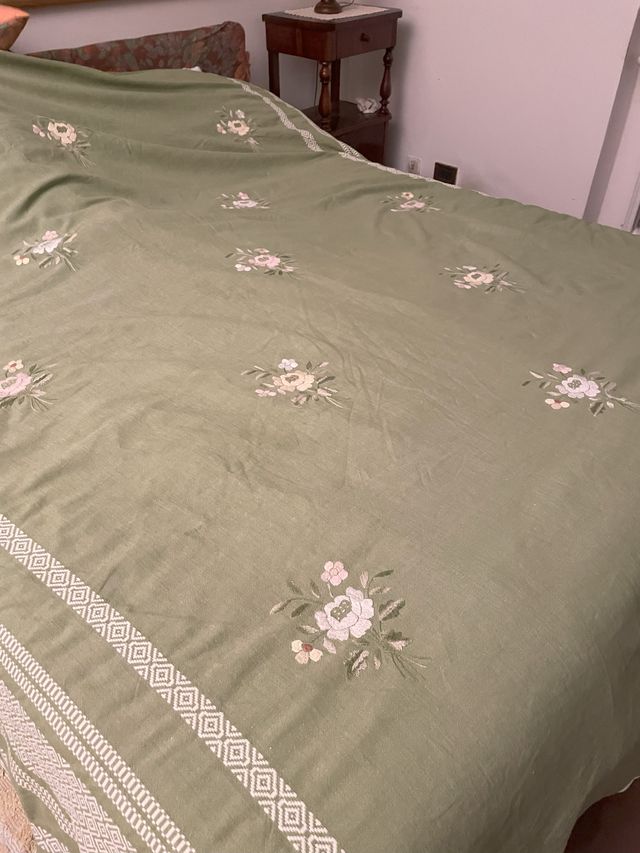 Copriletto lino ricamato a mano