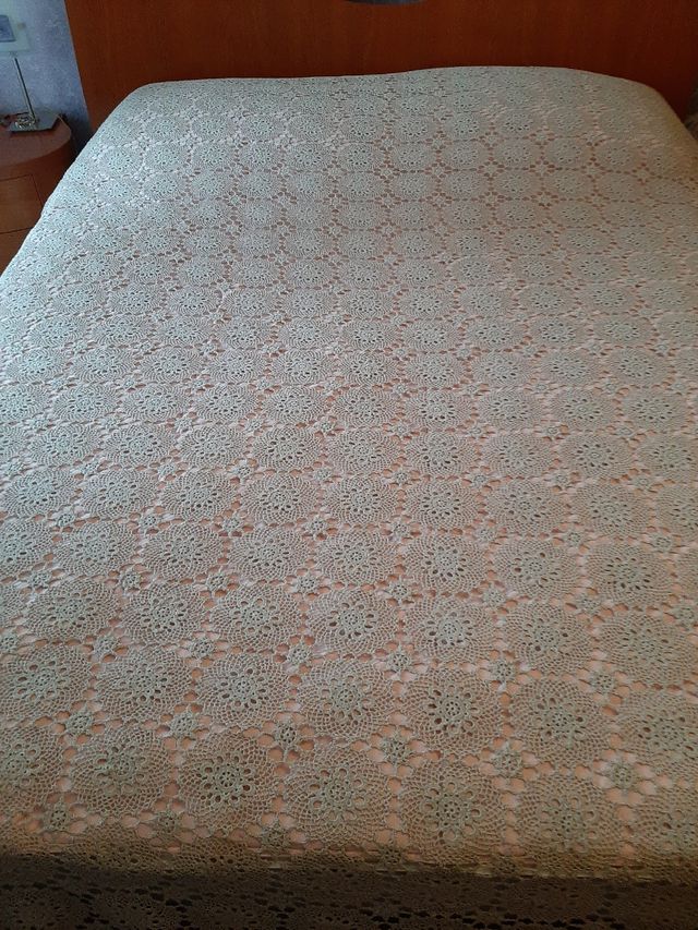 Copriletto matrimoniale realizzato a mano all'uncinetto di color beige