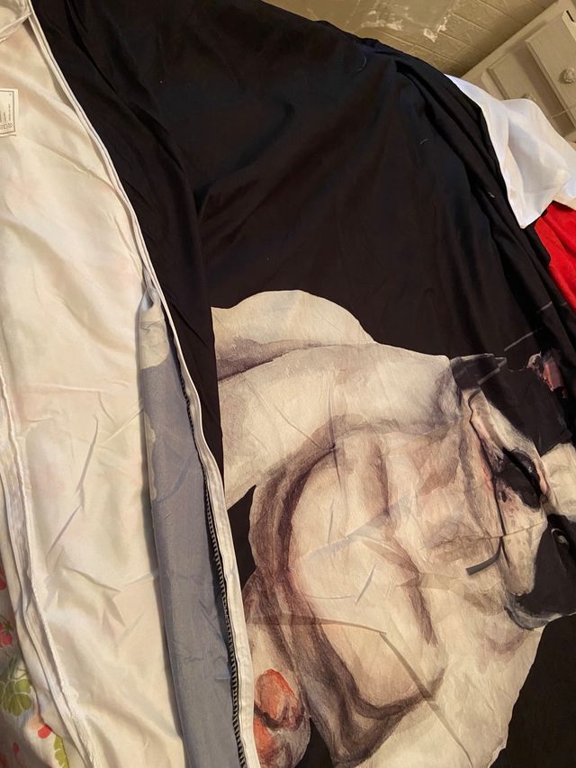 Copripiumini matrimoniale con cerniera e due federe con stampa bulldog francese.