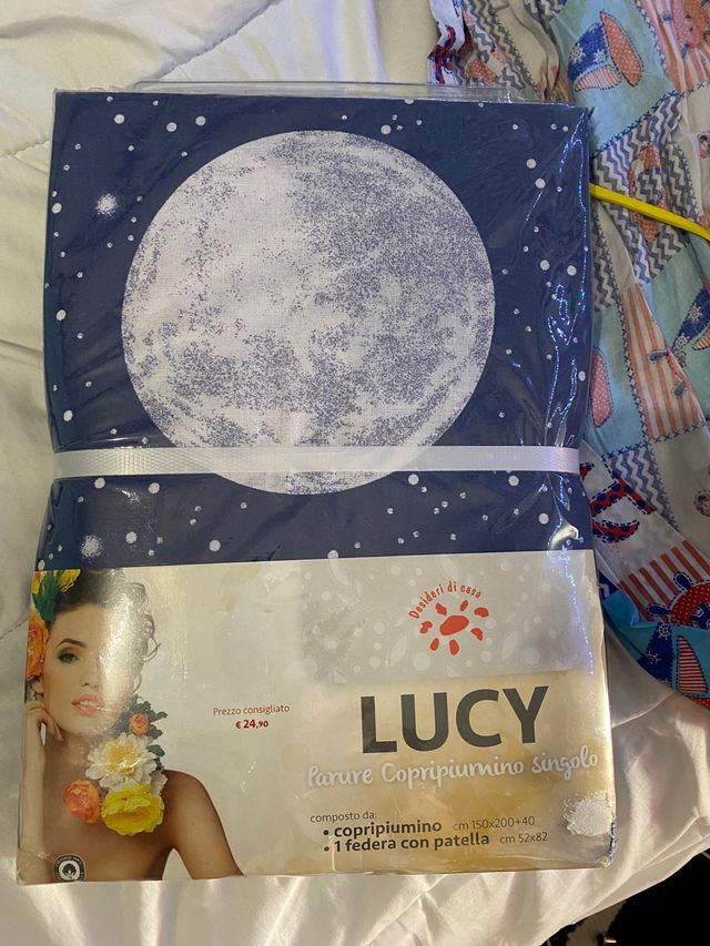 Nuovo con scatola , copripiumino e 1 federa con patella .