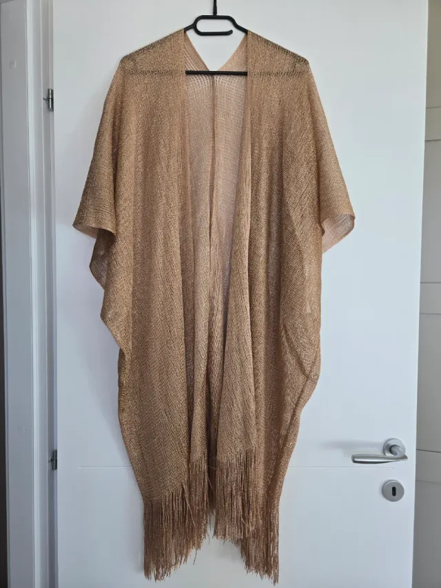 Coprispalle lungo dorato con frange