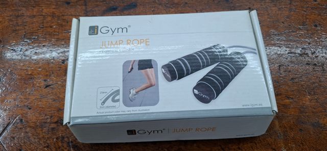 Corda da salto marca Gym, ideale per allenamenti. Manici ergonomici. Cavo resistente.