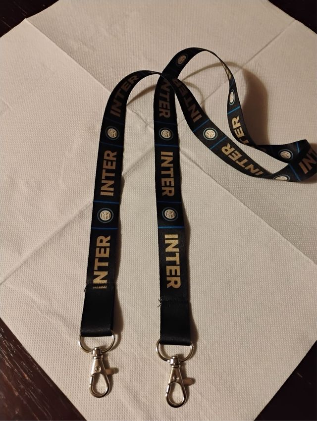 Cordino nero con logo Inter, ideale per portare il telefono. - Design con logo Inter ripetuto. - Dotato di moschettoni per aggancio.