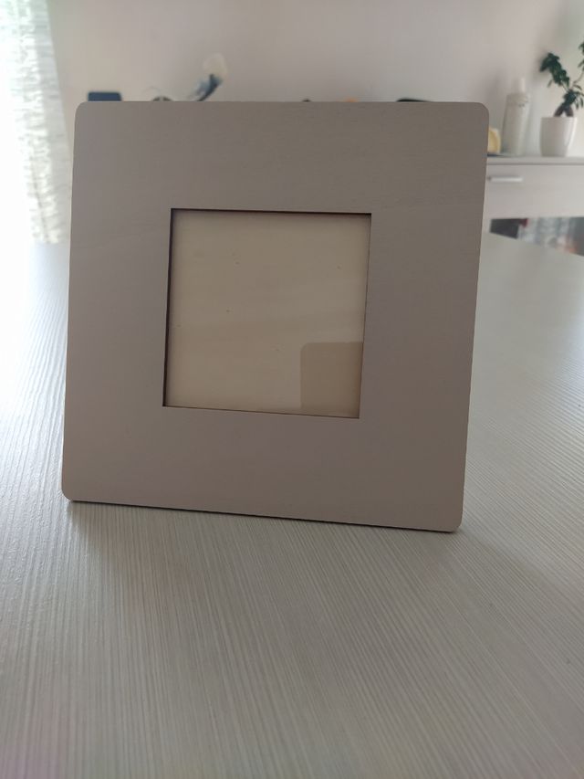 Cornice in compensato,lavorazione artigianale, dimensioni intera cornice 19,5x19,5 cm dimensione riquadro interno 9,5x9,5 cm.Marca Fabula wood
