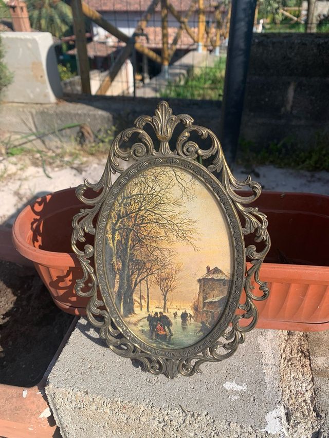 Cornice antica ottone con quadro inverno
