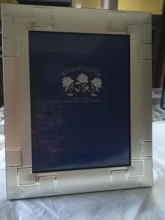 Dettagli del prodottoCornice moderna 15x20 opaca con quadrati lucido, con scatolo. Retro velluto nero Ideale per regalo matrimonio.