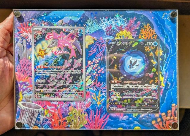 Dettagli del prodottoCornice Pokémon 13×18 cm in plexiglass trasparente con piedini in alluminio e grafica olografica per Veluza (PAR 192) e Lumineon (CRZ GG39). Un display moderno e luminoso per la tua collezione.