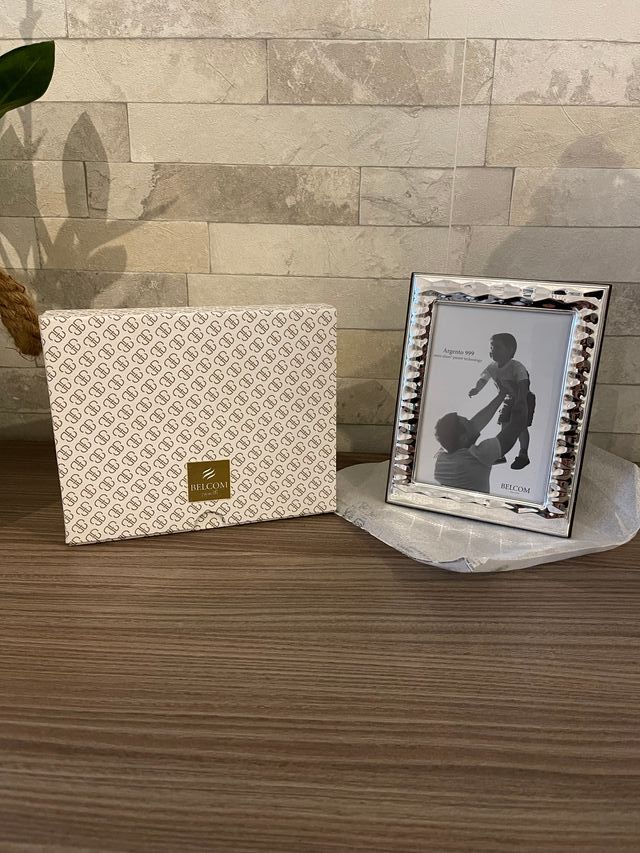 Dettagli del prodottoElegante cornice portafoto Belcom in argento, nuova e ancora nella sua confezione.