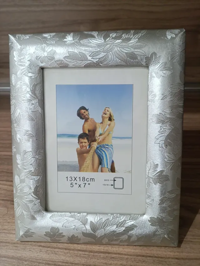 Elegante cornice portafoto con decorazioni floreali in rilievo. - Colore: Argento - Motivo: Fiori e foglie - Dimensioni foto: 13x18 cm (5x7)