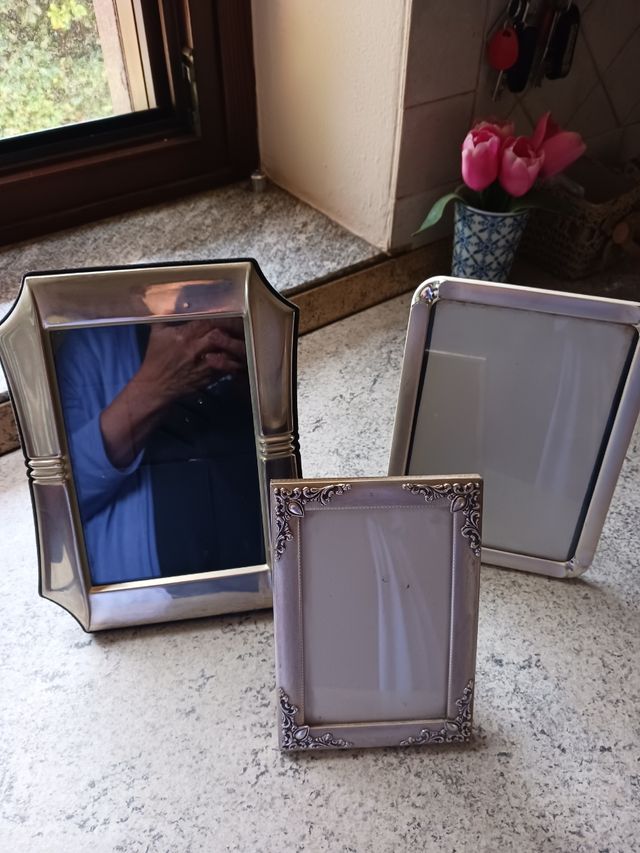 Dettagli del prodottoN.3 cornici portafoto in acciaio argentato misurano cm.20x15, 23x17 e 16x11. Si possono posizionare in verticale e in orizzontale. Ereditate vendo causa inutilizzo. Sono da lucidare